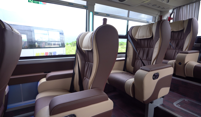 作為蘇州金龍面向高端商旅市場精心打造的旗艦車型,海格V9于細節之處盡顯定制化匠心。其采用的1+1座椅布局遠超常規大巴標準,每一個座位均依據人體工學原理進行設計,大幅提升了支撐性與包裹感,即便長途乘坐也依然舒適從容。